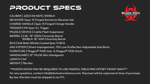 • 300BLK: 16″ 4150 Chromoly Barrel